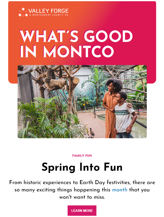 For example, at Valley Forge Tourism & Convention Board, we created a quarterly newsletter focused on golf in Montgomery County, PA, so we can share golf related information to those interested in the sport.