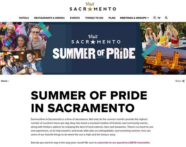 Pivoting away from data slightly, I wanted to wrap up the week by throwing out a few examples I observed of destinations doing some incredible things. Take a look at Sacramento’s work in the LGBTQ space – they engaged Communify to develop a multi-year strategy with a local advisory committee to ensure that their efforts are both targeted and authentic.