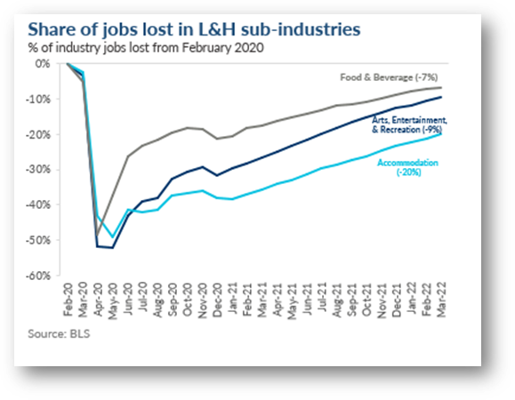 Lodging sector employment remains 20% below pre-pandemic levels.