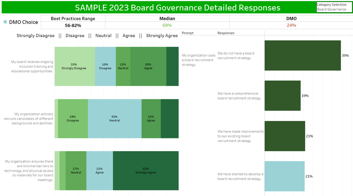 After completing the Assessment, Michelle knew that in-depth data would be critical for their analysis and strategic planning. She selected the Tool’s “Standard” package, which provided VSGC with an extended scorecard, including individual scores for each question, median results, and best practice ranges.