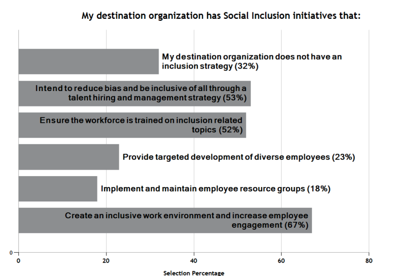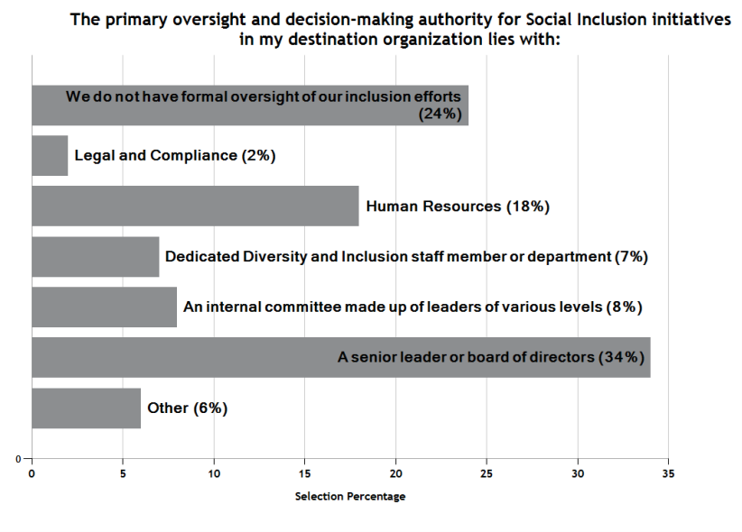 Upon reviewing data per each section of the assessment, workplace-related responses need improvement. Our destination organizations need to invest more time in developing their internal culture of inclusion. Destinations can begin by defining what inclusion means as a team, providing strong leadership support by communicating how an inclusive culture is being established and offering opportunities for teams to provide feedback on the kind of culture they would like to create for each other.
