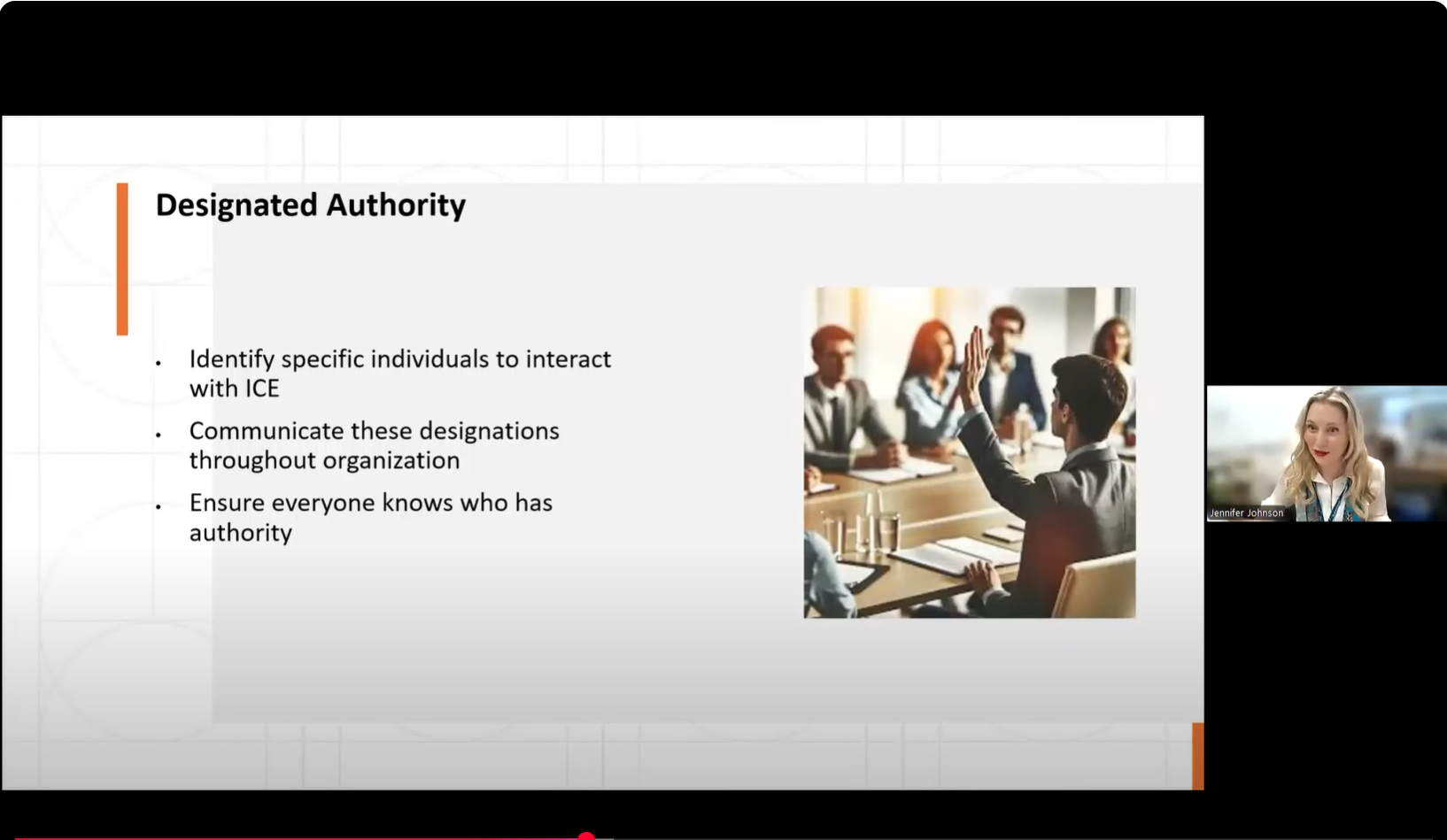 Immigration attorney Jennifer Johnson gave practical advice for businesses to prepare lawful responses for ICE interactions. She suggested assigning an ICE liaison within businesses, establishing clear consent protocols, crafting effective front-line communication strategies, and connecting businesses with immigration attorneys.