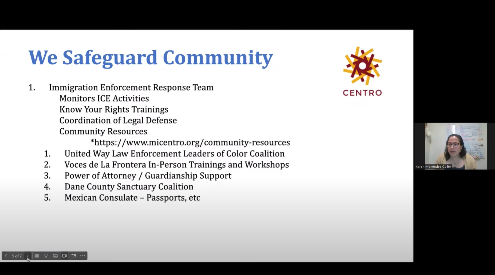 Centro Hispano’s executive director Karen Menedez Coller focused on the worker resources offered by the organization for employees, families, and community members. She emphasized the inclusive nature of their services for families and individuals. And she provided a guideline for how to access their resources online and in-person.