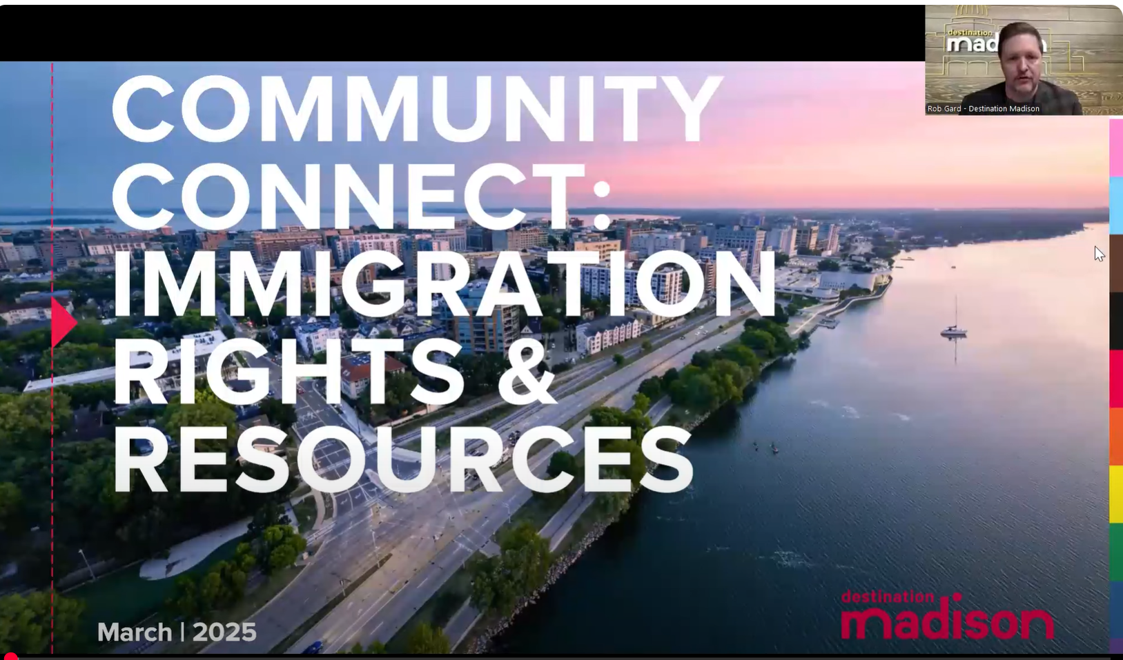 Destination Madison partnered with Downtown Madison, Inc. and Madison’s Central BID to address member concerns about immigration and potential ICE raids. Based on feedback, we hosted a secure, invitation-only webinar on immigration rights, strategies for handling unannounced ICE appearances, and key community resources. The partner organizations helped shape the theme of the panel and invited their memberships to attend as guests.
